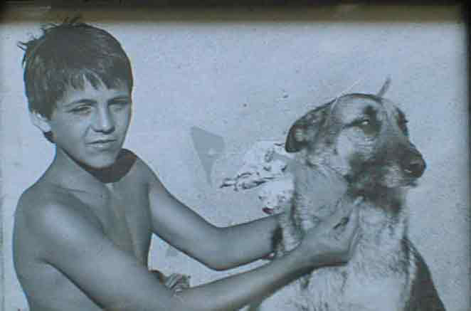 Neto de Maria Celeste de Oliveira Pereira na praia a brincar com o cão. | |||||